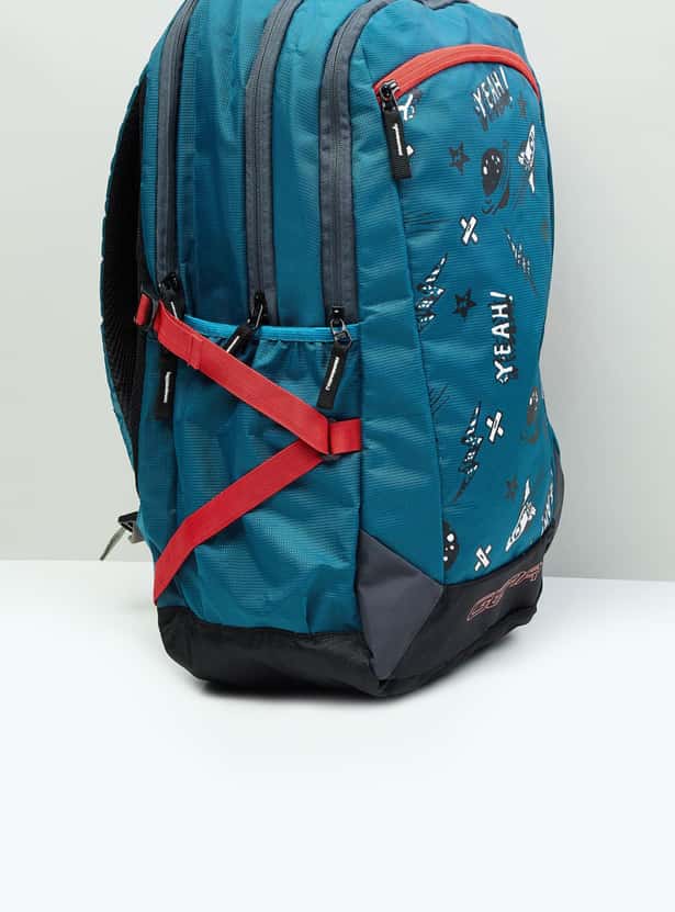 Convenience and comfort go hand in hand in this backpack featuring bold prints, spacious compartments, internal and external zip pockets. It also comes with padded shoulder straps to lend ample comfort.