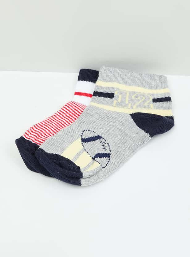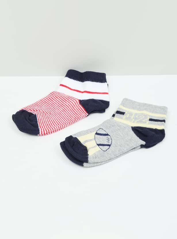 MAX Boys Patterned Ankle-Length Socks - Set of 2- 2-4 Y