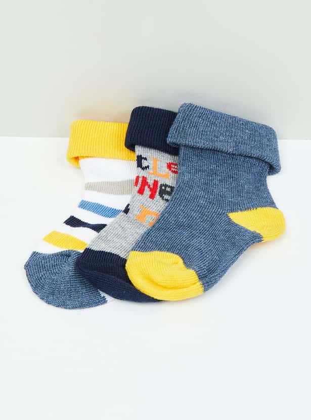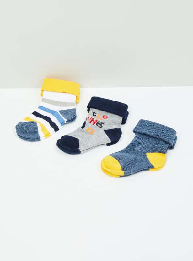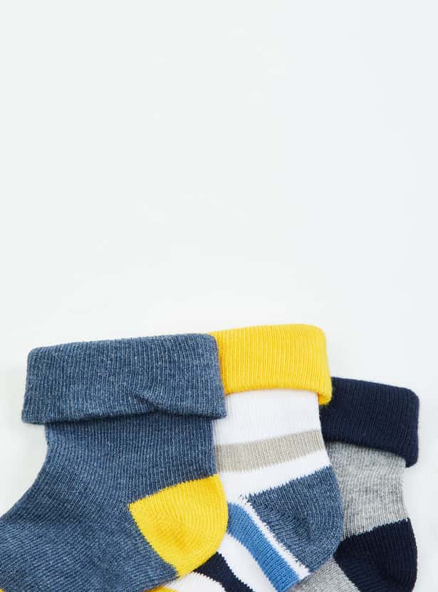 MAX Boys Patterned Ankle-Length Socks - Set of 3- 0-6 M