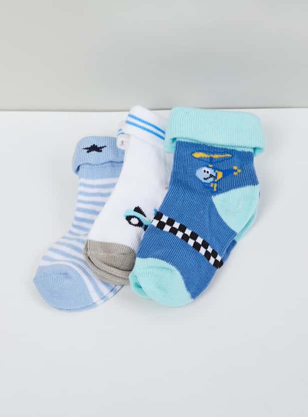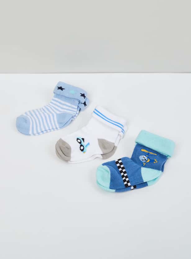 MAX Boys Patterned Ankle-Length Socks - Set of 3- 1-2 Y
