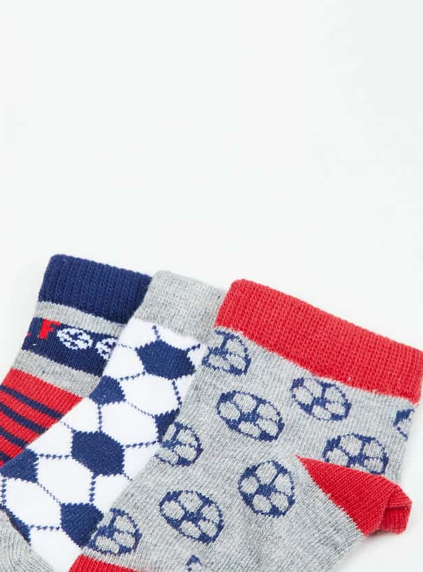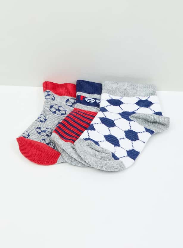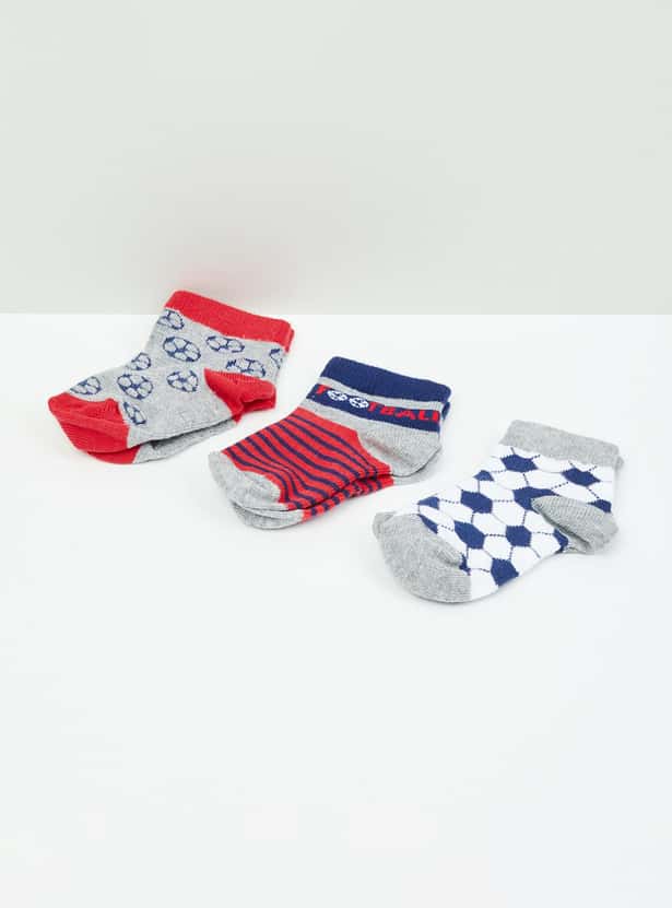 MAX Boys Patterned Ankle-Length Socks - Set of 3- 1-2 Y