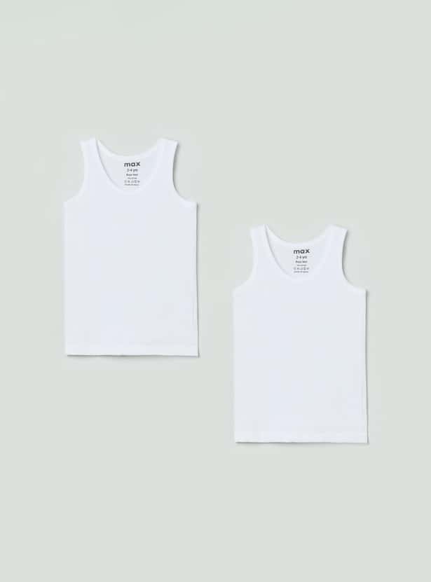 Boys Solid Sleeveless Vest- Pack of 2