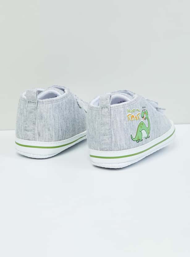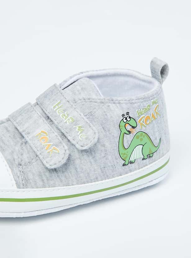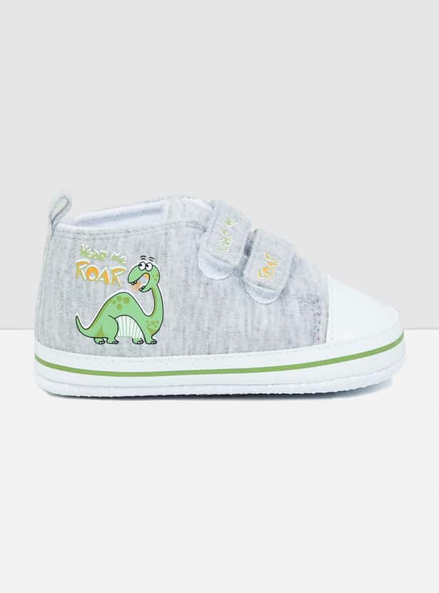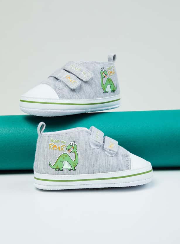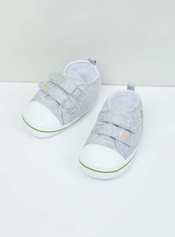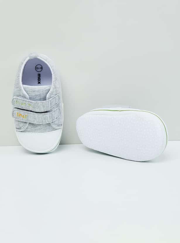 This pair of casual shoes feature a printed surface design with velcro strap fastening and rounded toe. The textured soles of this pair ensure superior grip.