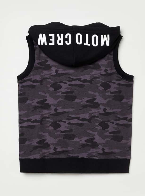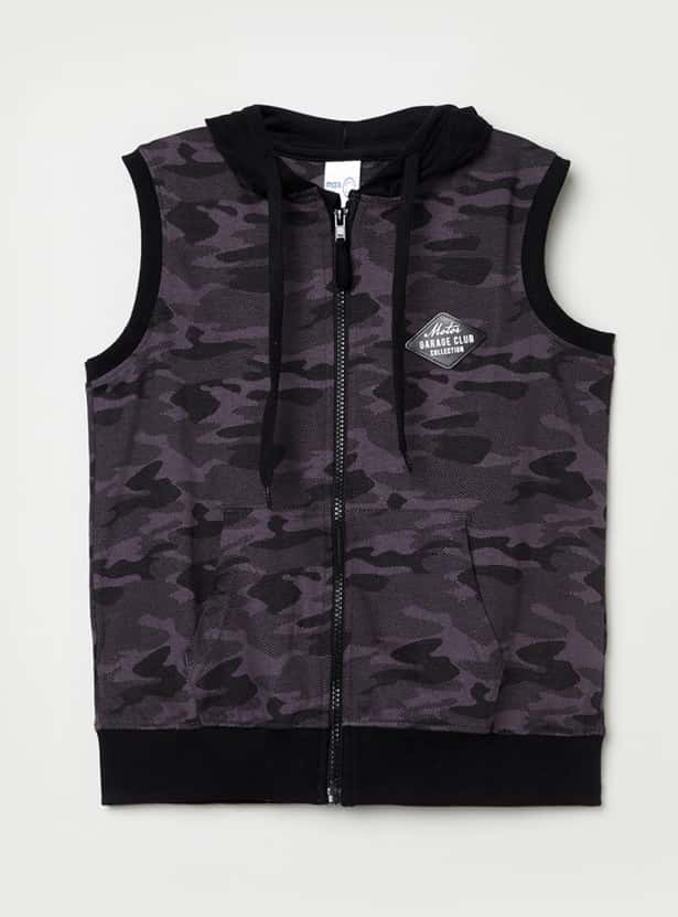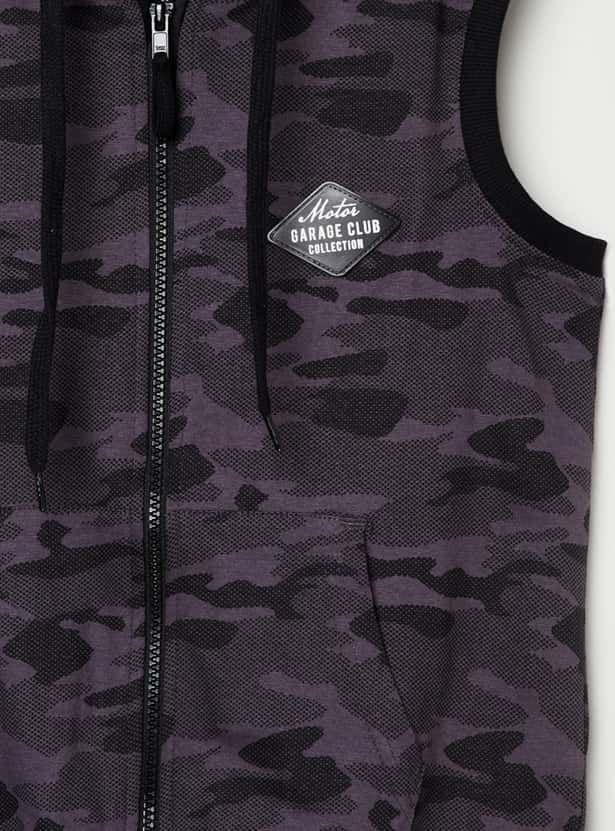 Step up your child's style quotient with this camouflage printed hooded jacket, which has a zip closure and two pockets