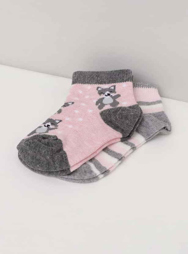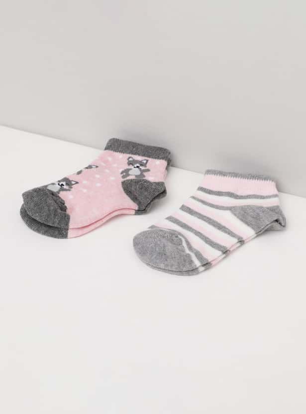 MAX Girls Patterned Ankle-Length Socks - Set of 2