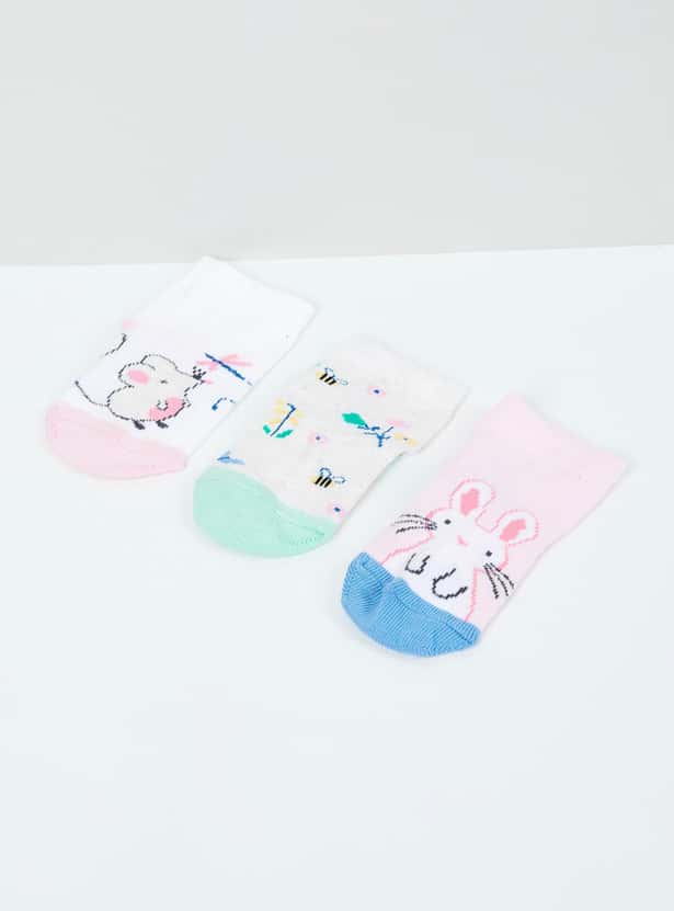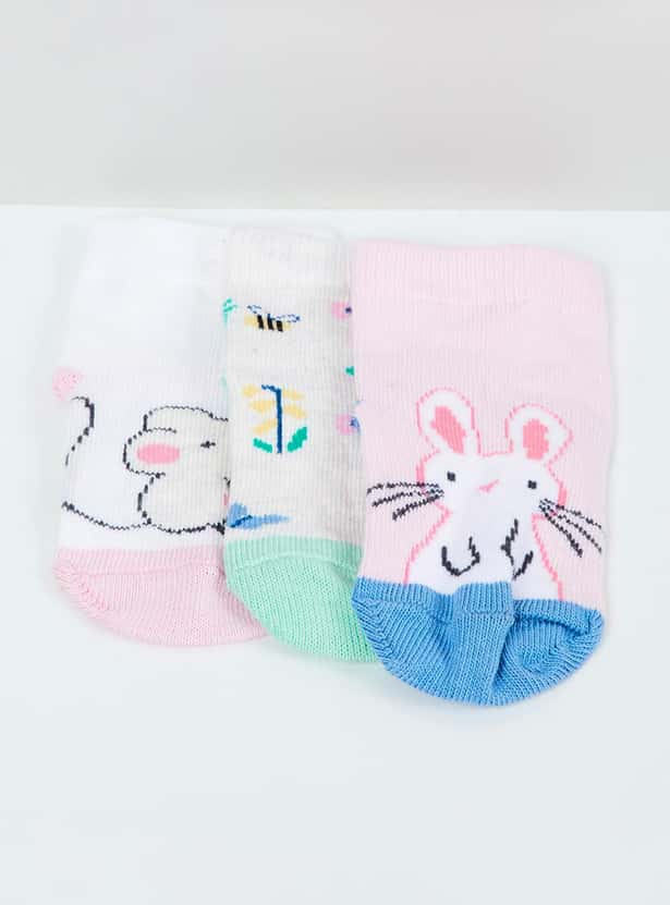 MAX Girls Patterned Knit Socks - Set of 3- 0-6 M