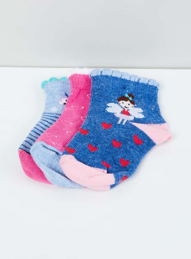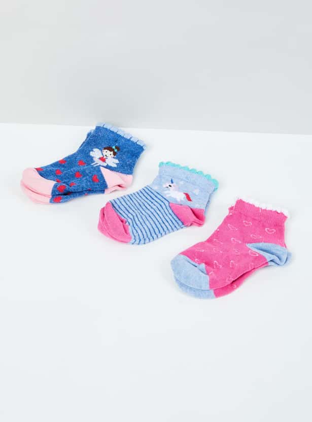 MAX Girls Woven Design Socks - Pack of 3- 1-2 Y