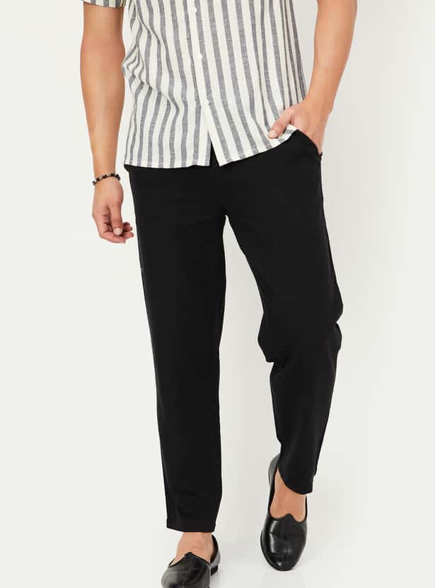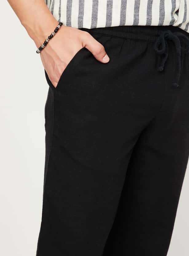A versatile addition to your ethnic wear collection, this pair of pyjamas is rendered in a solid tone. It features an elasticated waist with drawstring closure.