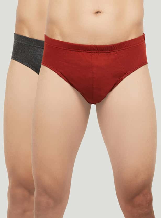 Men Antibacterial Solid Knitted Briefs - Pack of 2