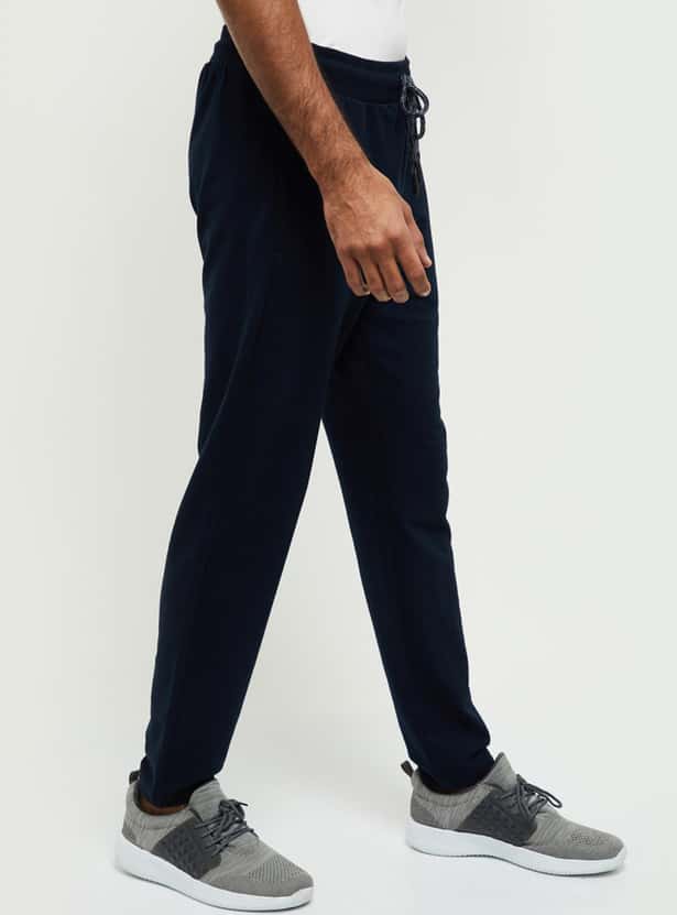 Tailored with a solid design on the surface, this track pant is designed to offer a blend of comfort and style for your daily routine. It comes with an elastic waistline and pockets at the sides.