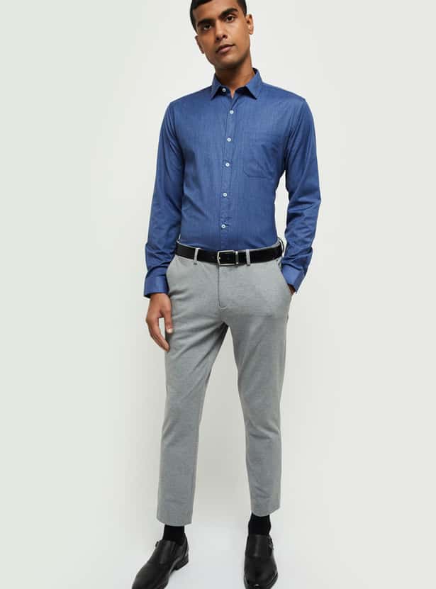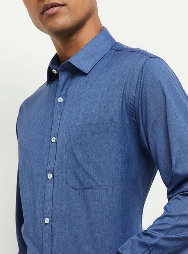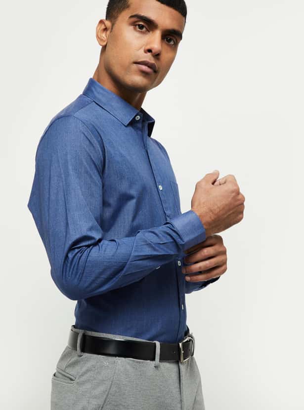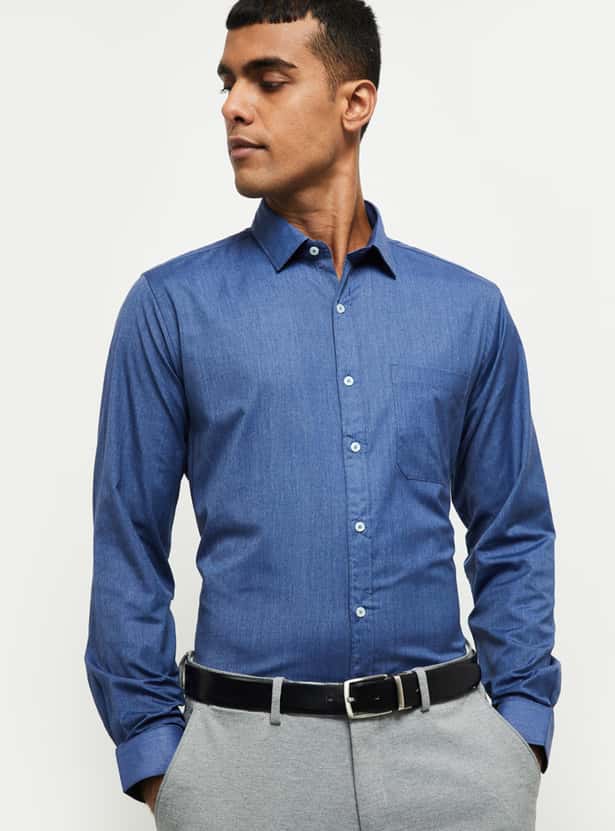 Sharpen up your formals with this solid shirt, which has long sleeves and spread collar.