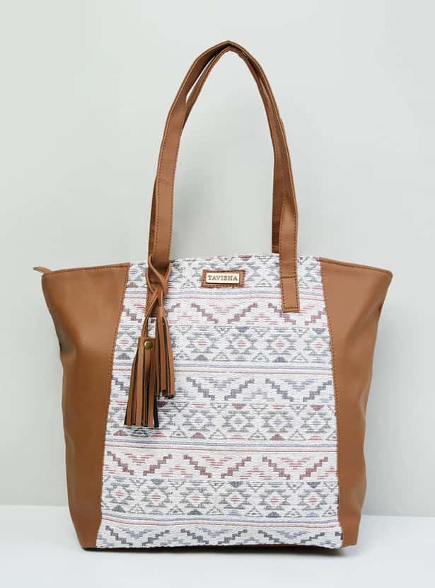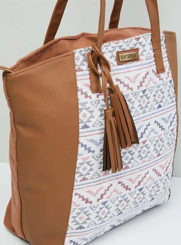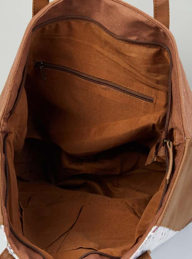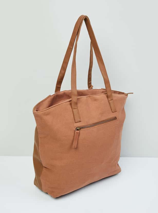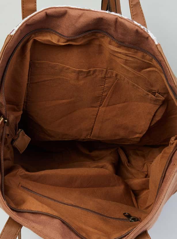 Designed with bold embroidery, this tote bag is enhanced with a spacious compartment, zip closure, easy-to-carry handles and zipper pockets.