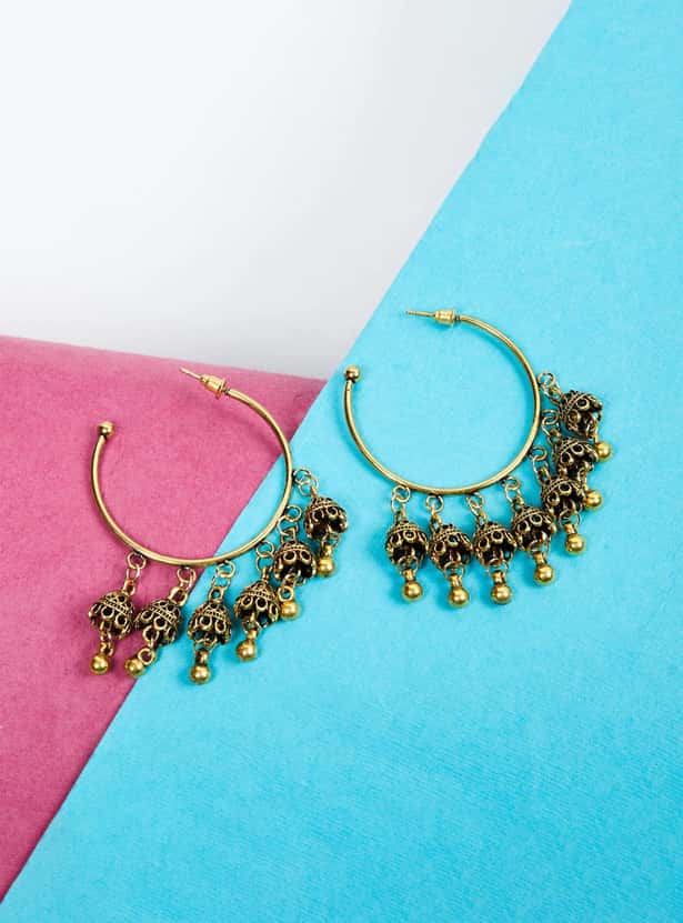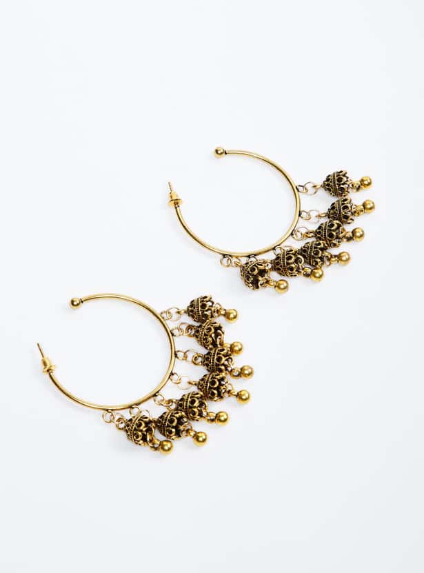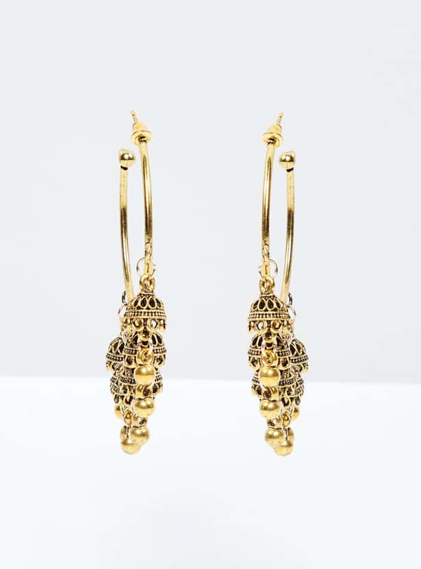 Accessorize your ensemble with the elegance of this chic pair of earrings, that comes with an embellished design and a jhumka silhouette. Style it with your ethnic attire for a statement-making look.