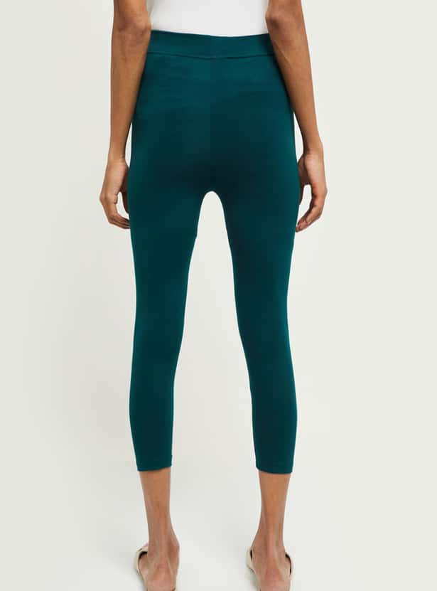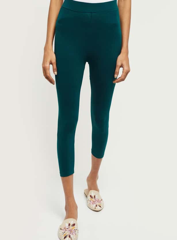 This pair of cropped leggings feature a solid silhouette with an elasticated waist. Team this versatile pair with kurtas or tunics to complete your casual ethnic look.