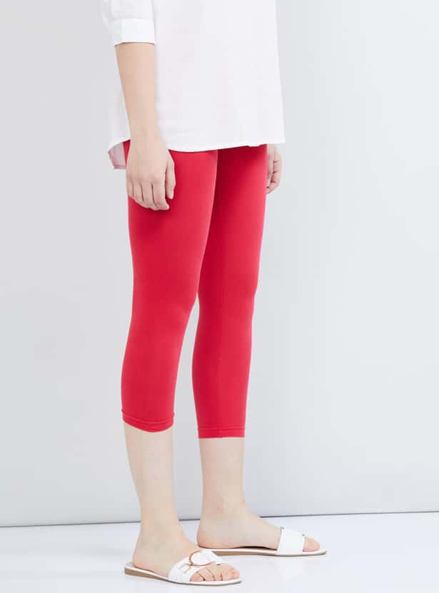 Women Solid Three-Fourth Leggings