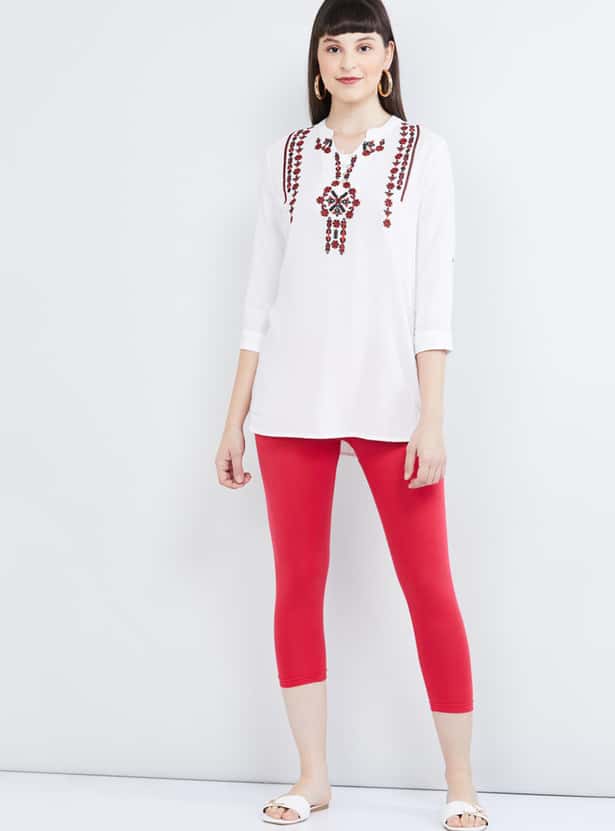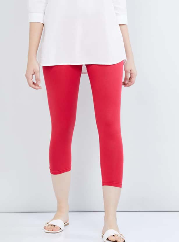 Get creative with your style with these three-fourth leggings. Featuring a solid pattern and an elasticated waistband, they offer both comfort and style for your urban ensemble.