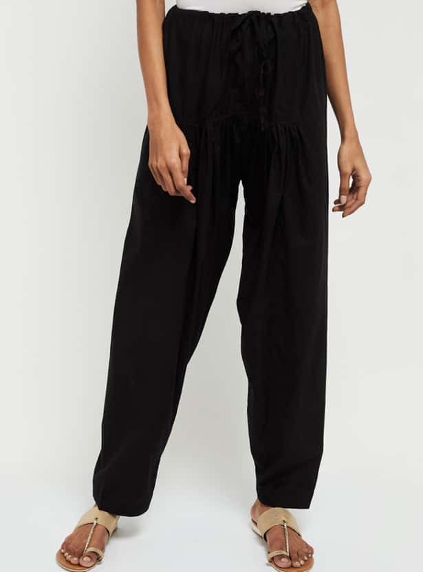A perfect comfort attire, this pair of salwar with pleats and a drawstring detail counts for your everyday wardrobe.