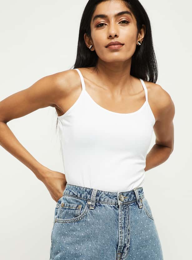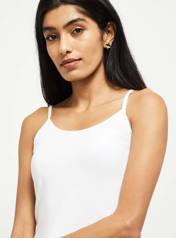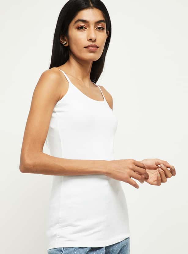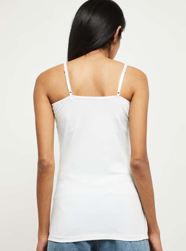 Bring unmatched comfort to your wardrobe with this versatile camisole that comes with a solid surface and an adjustable straps.