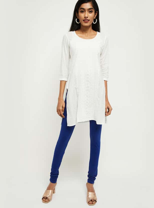 This pair of knitted churidars features a solid silhouette with an elasticated waist. Team this versatile pair with kurtas or tunics to complete your casual ethnic look.