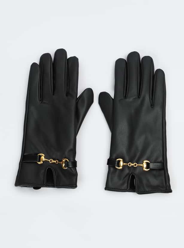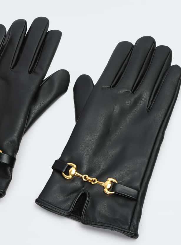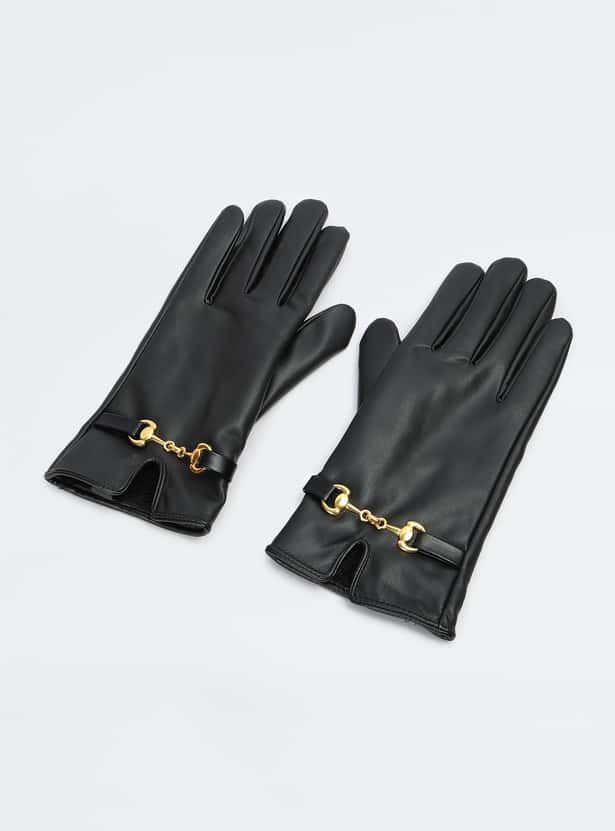 Women Solid Gloves with Horsebit